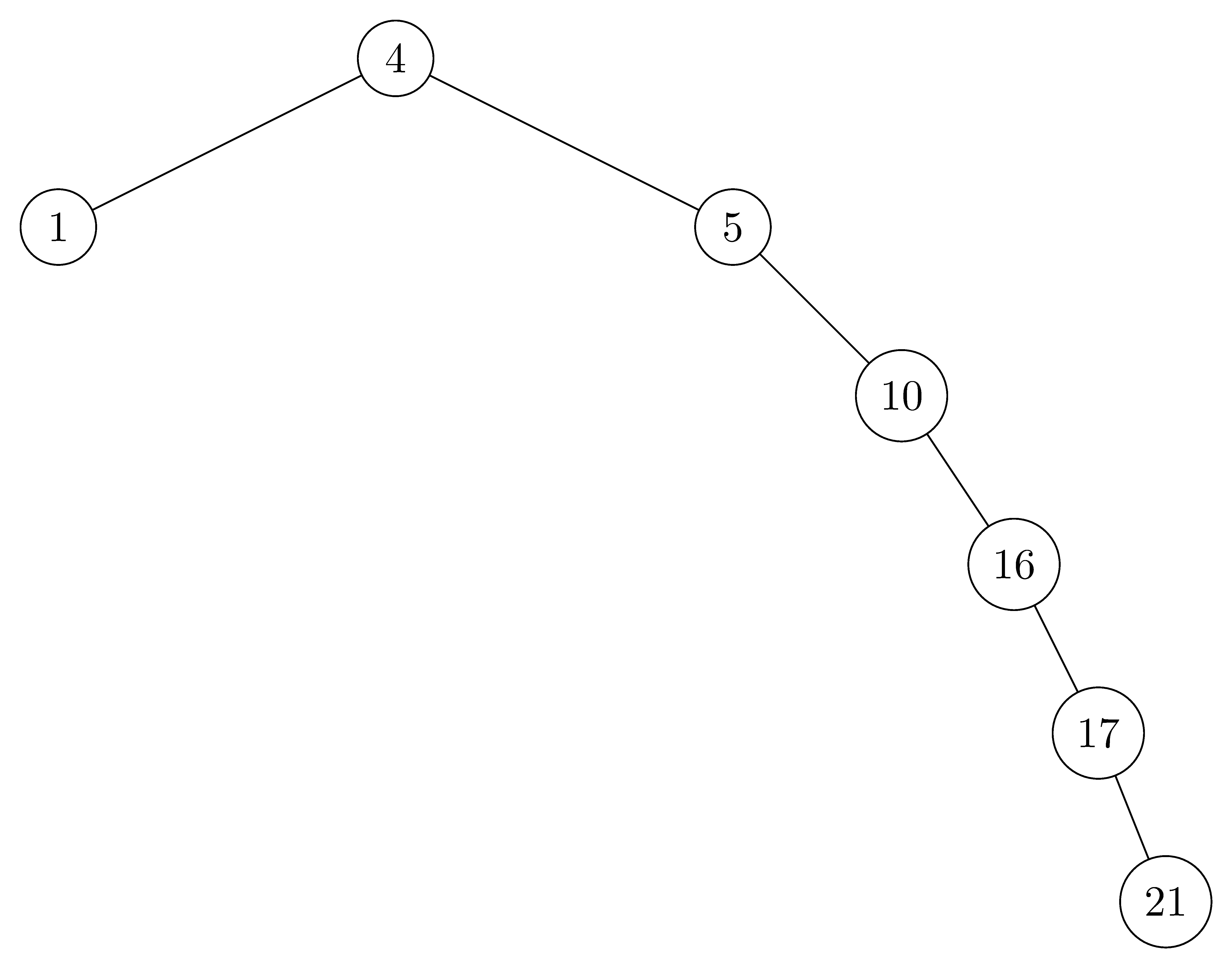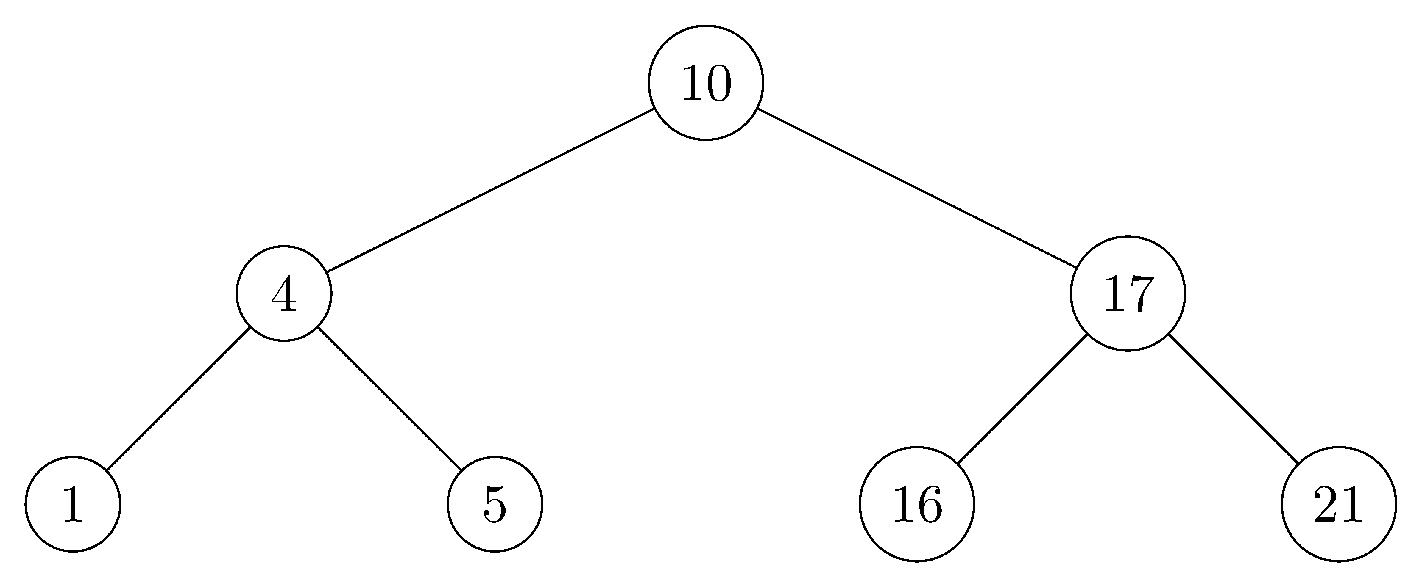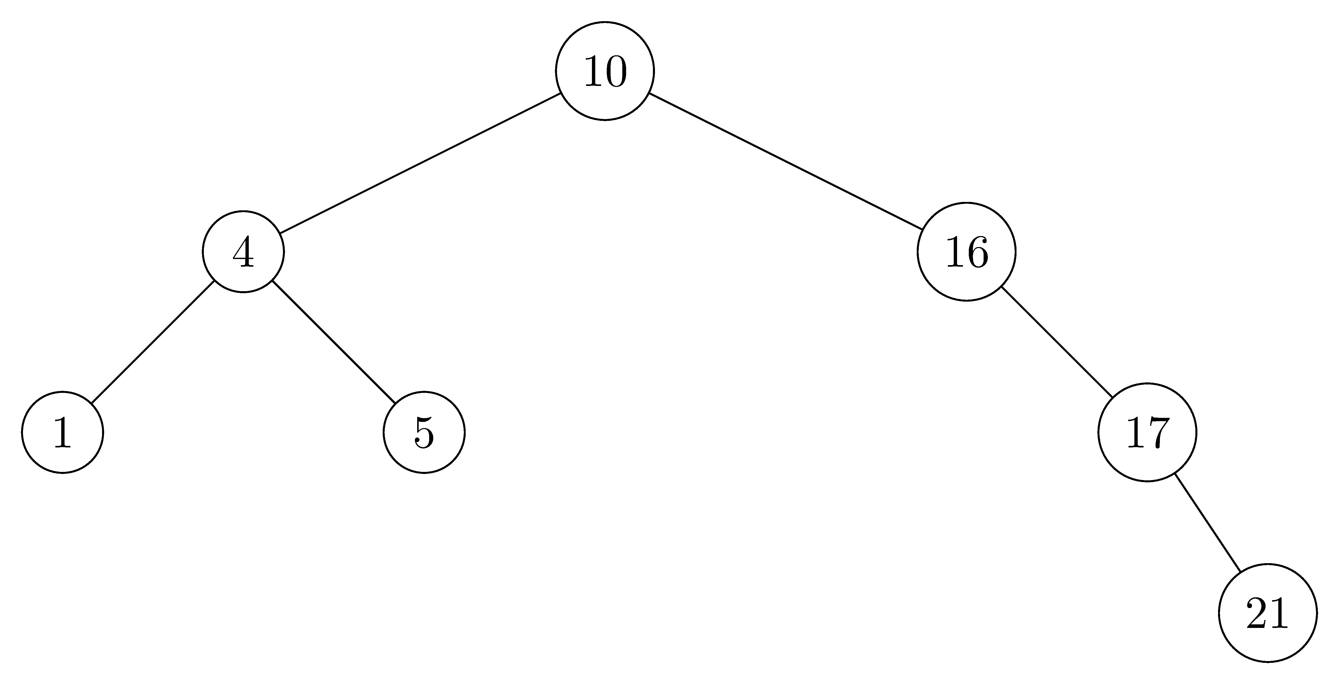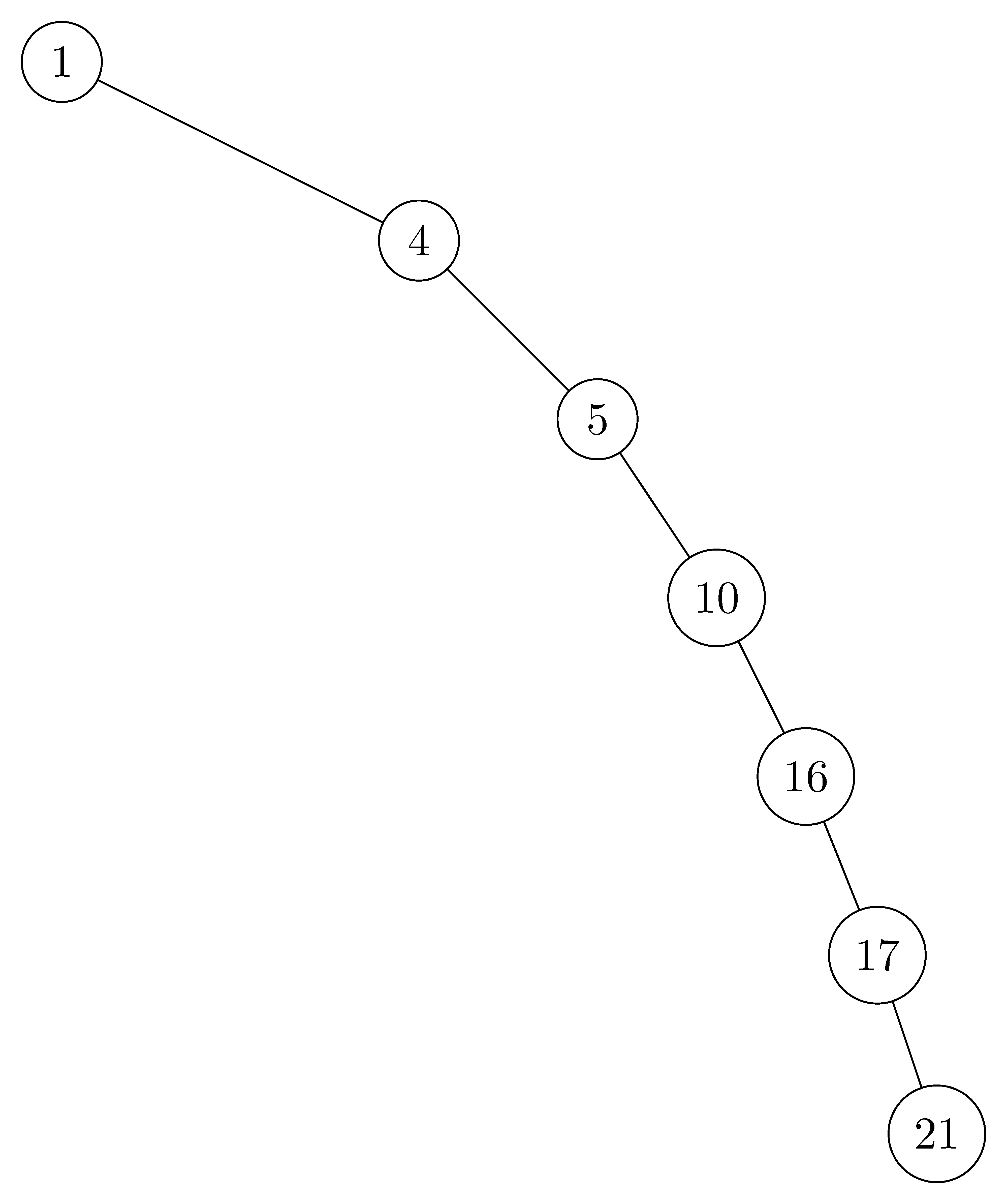 For the set of $\{ 1, 4, 5, 10, 16, 17, 21 \}$ of keys, draw binary search trees of heights $2$, $3$, $4$, $5$, and $6$.