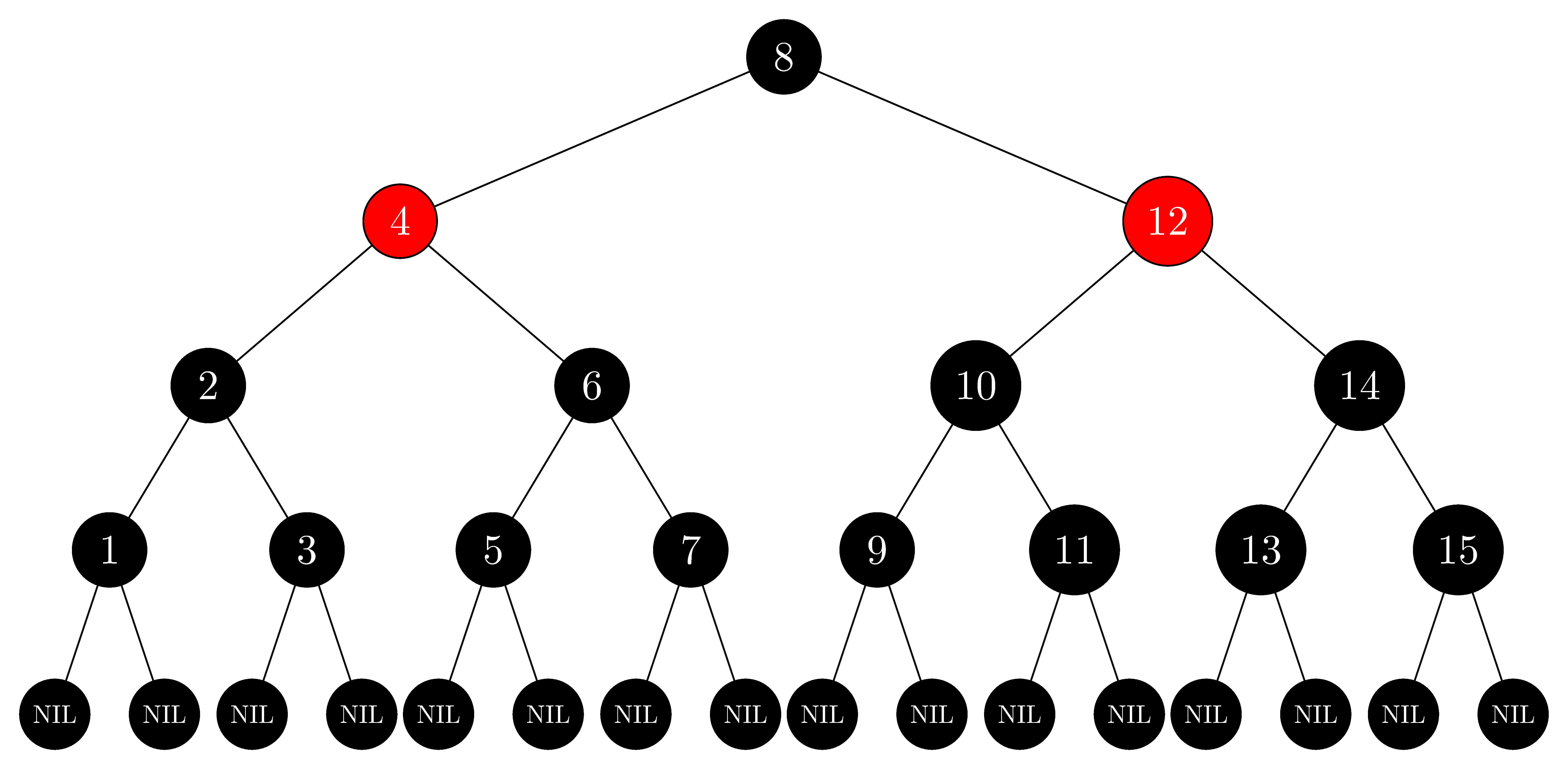 Red-black tree of $black\text-heights = 4$: