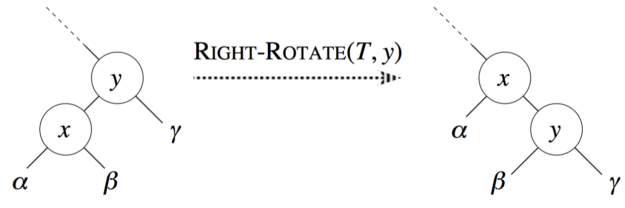 1 2 3 4 5 6 7 8 9 10 11 12 13 | RIGHT-ROTATE(T, y) x = y.left y.left = x.right if x.right != T.nil x.right.p = y x.p = y.p if y.p == T.nil T.root = x else if y == y.p.right y.p.right = x else y.p.left = x x.right = y y.p = x |