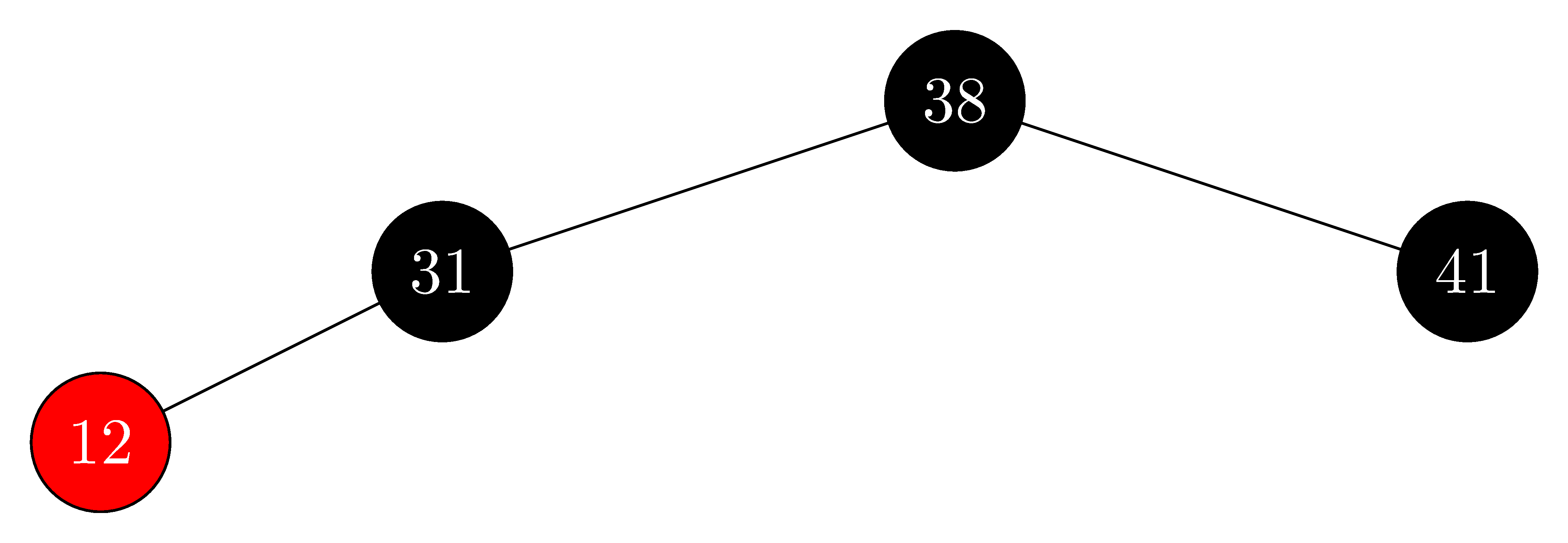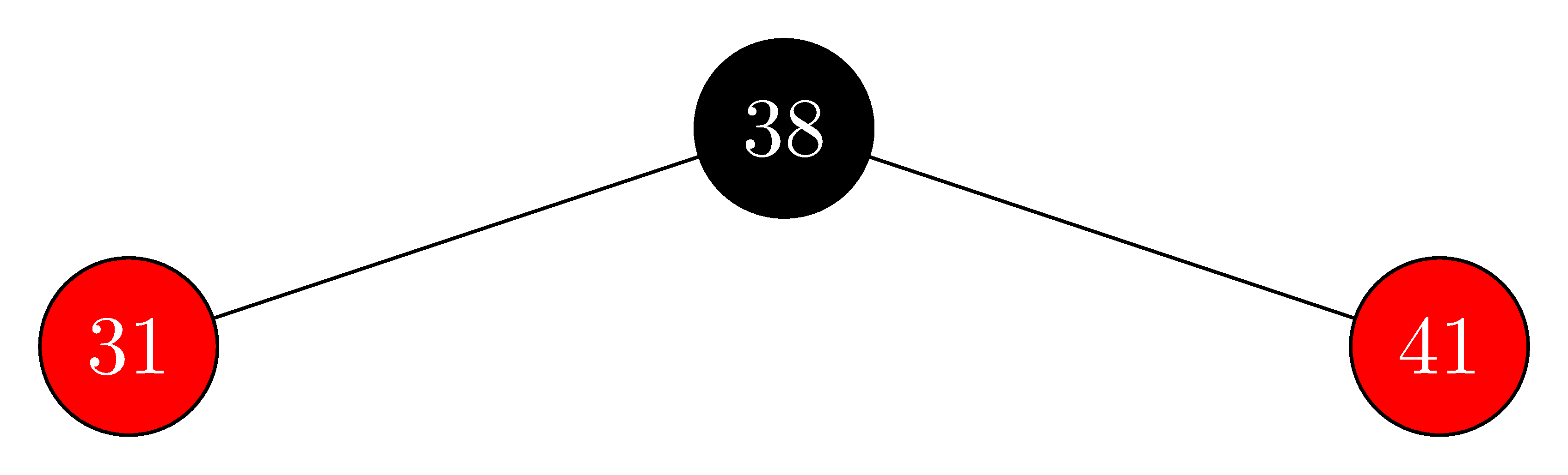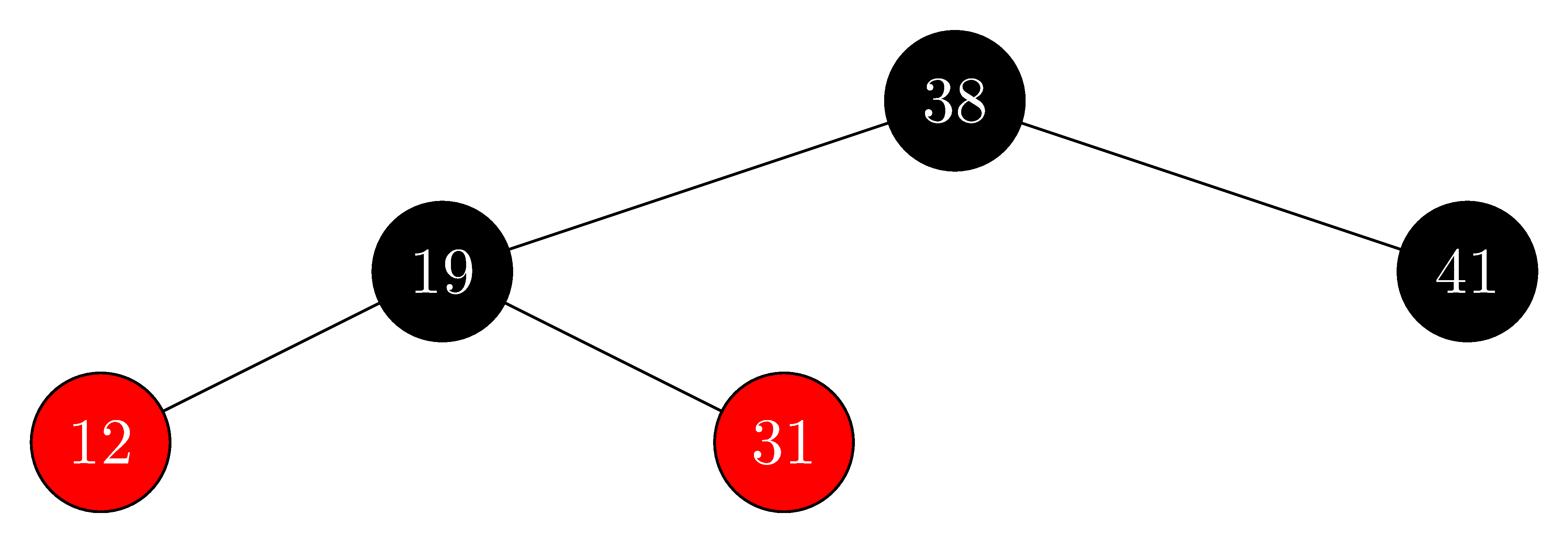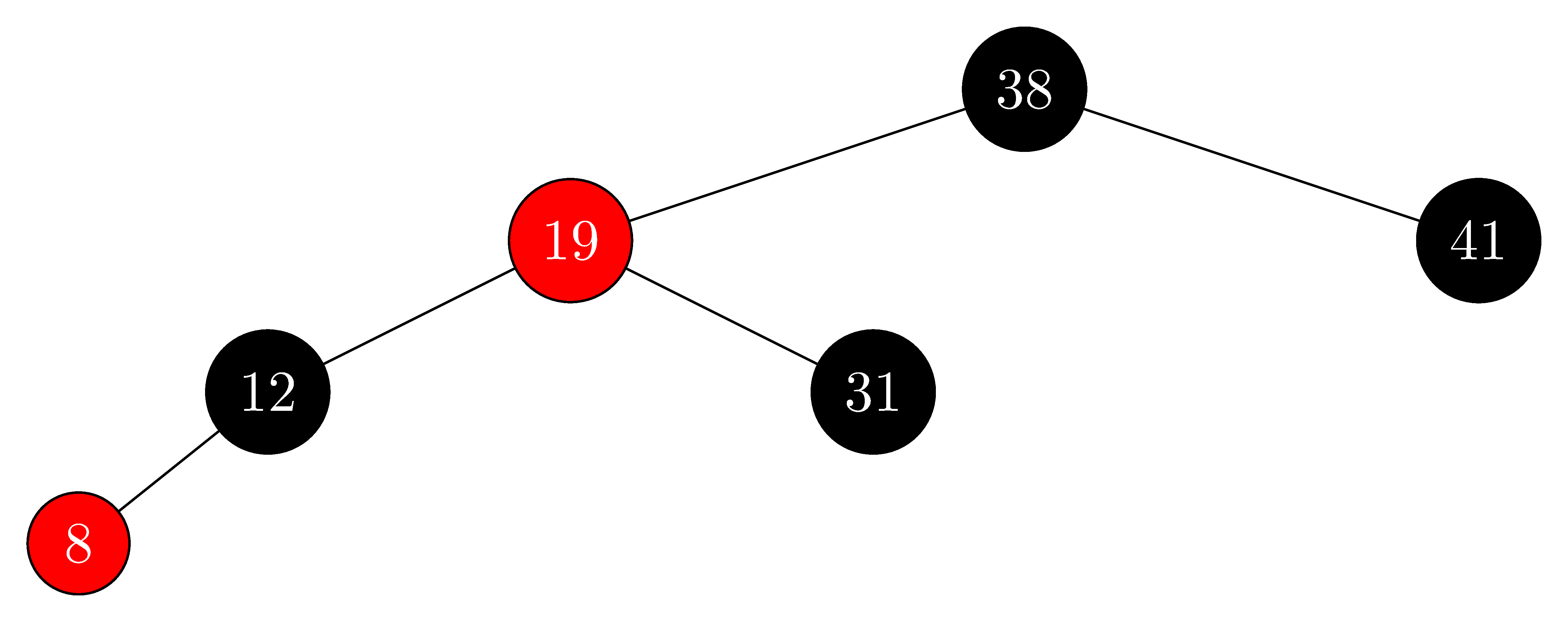 Show the red-black trees that result after successively inserting the keys $41, 38, 31, 12, 19, 8$ into an initially empty red-black tree.